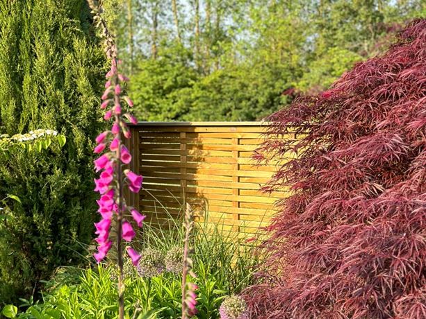 As seen on ITV’s Love Your Garden, our Woven fence panels are designed with traditional interwoven pales. Woven is a modern take on a traditional fence style, with thick timber pales the fence panel is semi-solid allowing some light and air to pass through. Due to its design the panel creates beautiful, dappled light and shade effect when the sunlight shines through.