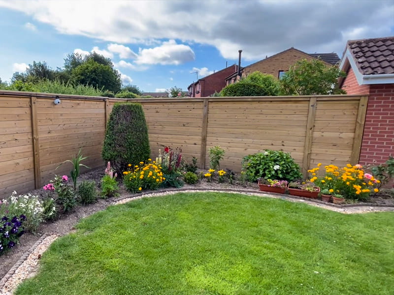 The old fencing was a larch lap style fence with incorrect posts. It did not offer much in terms of noise reduction, security, and aesthetic value.